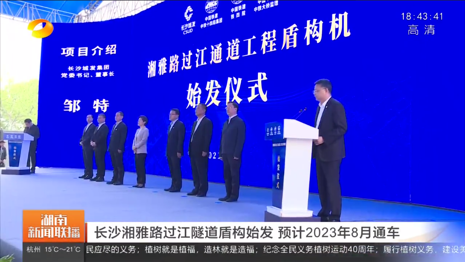 湖南新聞聯(lián)播:長(zhǎng)沙湘雅路過(guò)江隧道盾構(gòu)始發(fā) 預(yù)計(jì)2023年8月通車(chē) 湖南衛(wèi)視 3月30日
